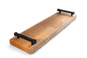 Available with or without wrought iron handles. If handles are not selected, the ends are relieved in the center for ease of lifting, allowing the board to be comfortably handled while preserving its clean, straightforward form.
